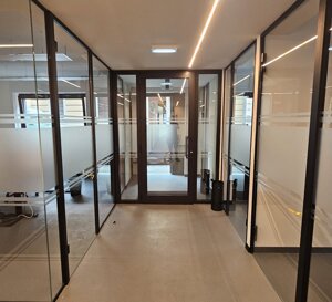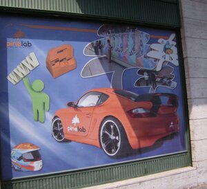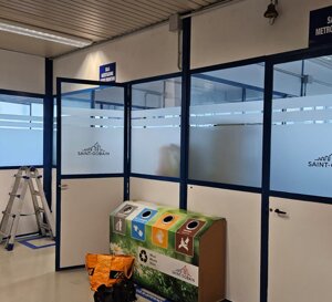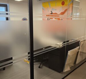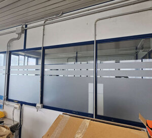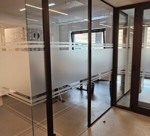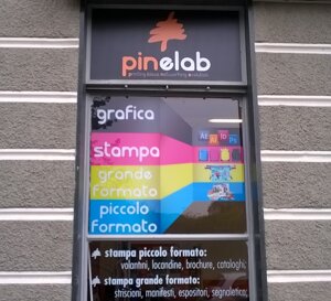 Personalizzazione di vetrine dei locali commerciali, vetrate, divisori in vetro o plexiglas di uffici